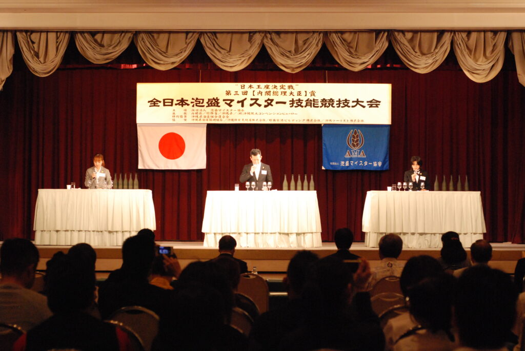本大会は、泡盛マイスターの社会的地位向上と、食品・公衆衛生の普及と観光産業及び地域活性化、泡盛文化の継承に貢献し、地場産業の発展に寄与すべく、将来を担う人材育成と資質向上のため、全国の泡盛マイスターが一同に会し最高の知識と技術を競う大会です。大会を通して泡盛マイスターという人材を国内外に発信する機会とし、泡盛文化の継承と発展に寄与することを目的としています。